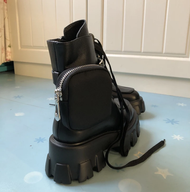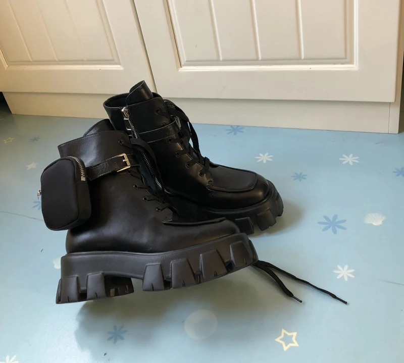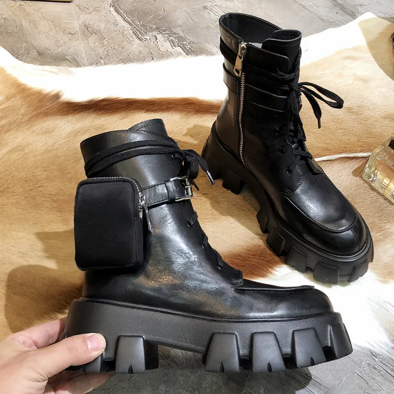 New autumn winter 2019 muffin platform mid-leg Martin boots army boots leather locomotive boots lace-up ankle boots pocket boots : Click Here
