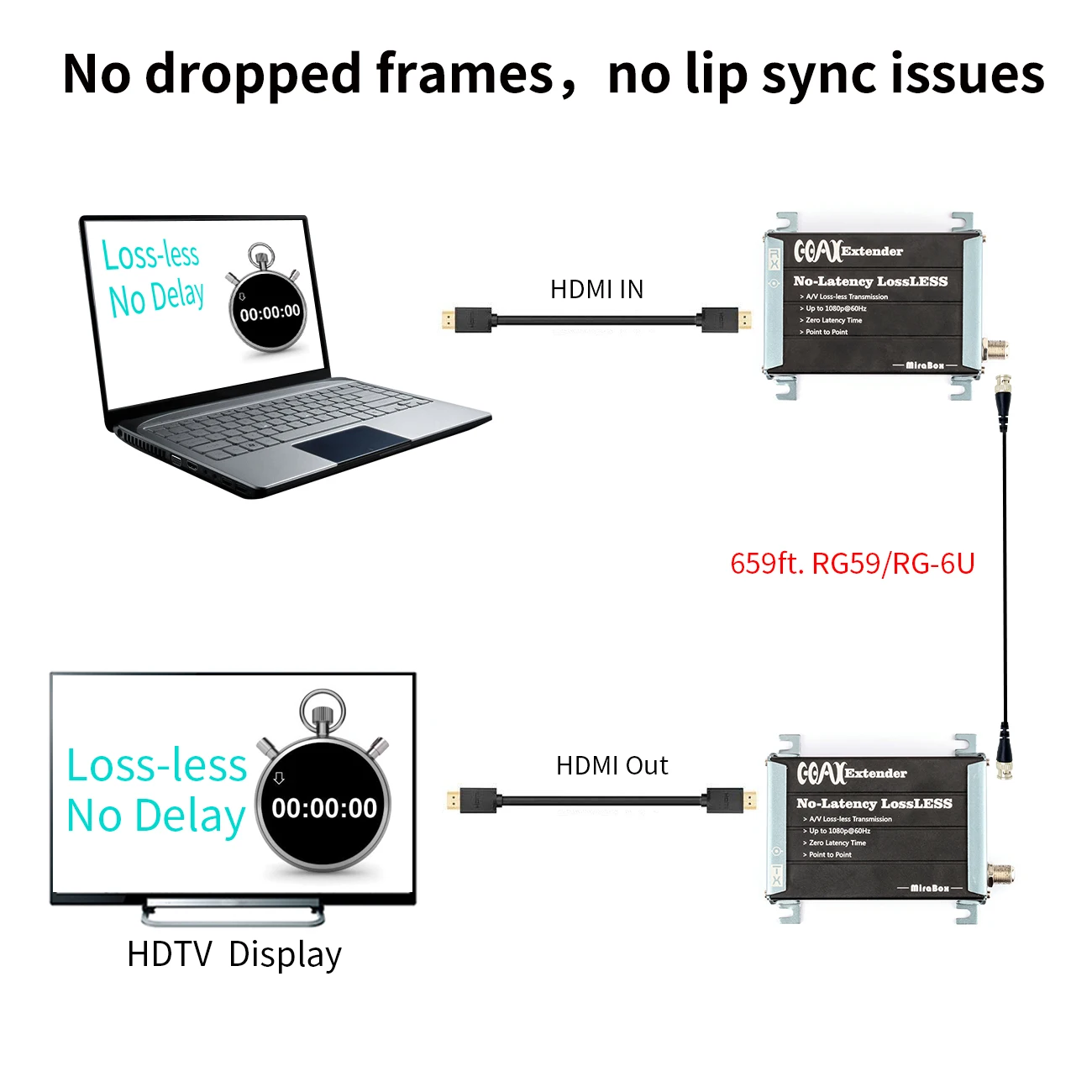 Check out our sale items Mirabox HDMI Coax Extender Over Single RG59/RG-6U Coaxial Cable with F Type RF Coaxial Connectors S and enjoy release standard Shipping on